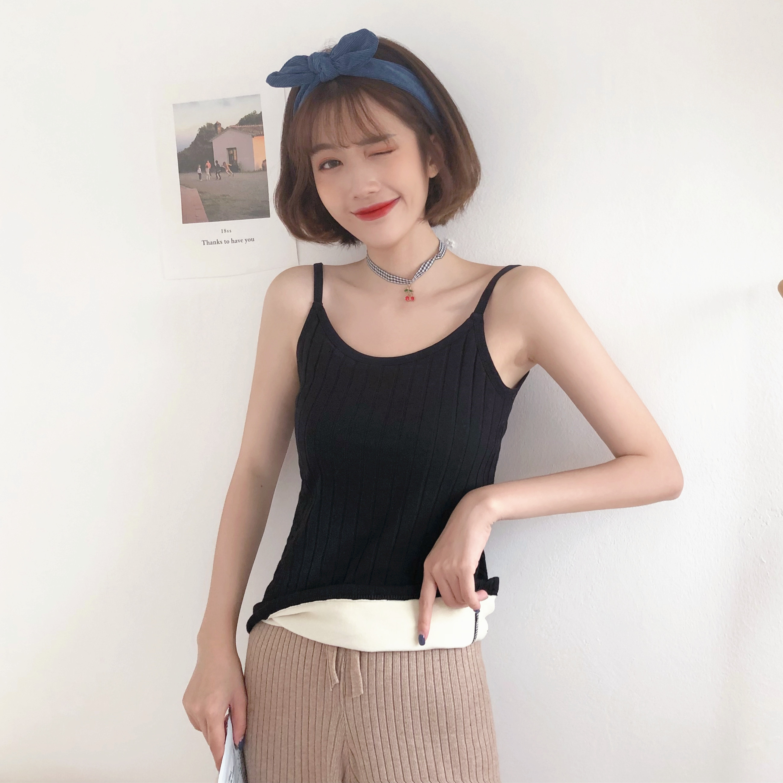 / 秋冬韓版純色修身顯瘦保暖吊帶背心學生加厚加絨打底衫內衣上衣女