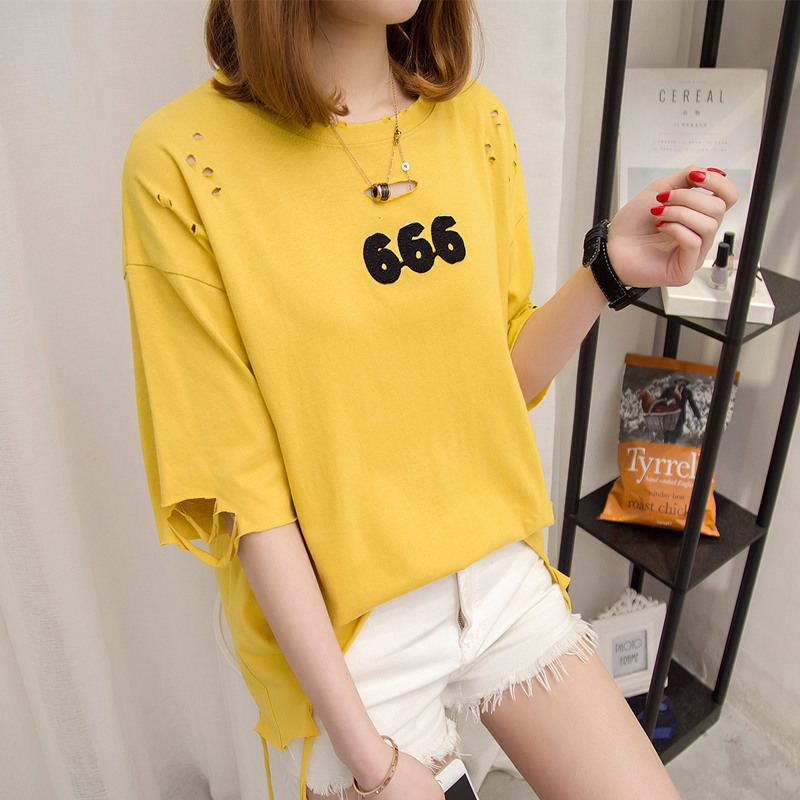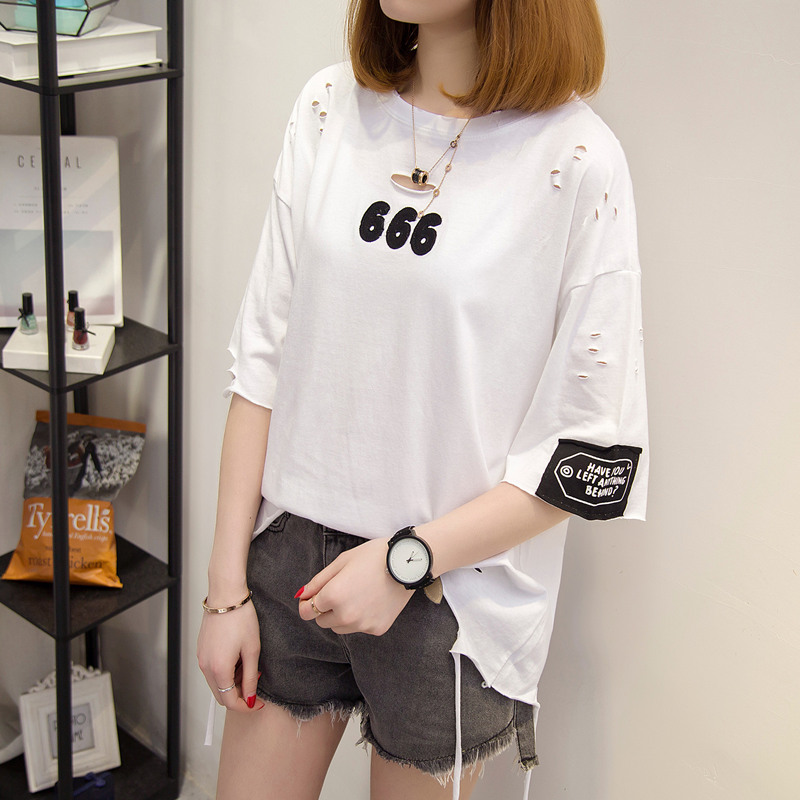 / 短袖上衣女夏新款白色t恤女中長袖韓版寬松半袖打底體恤百搭