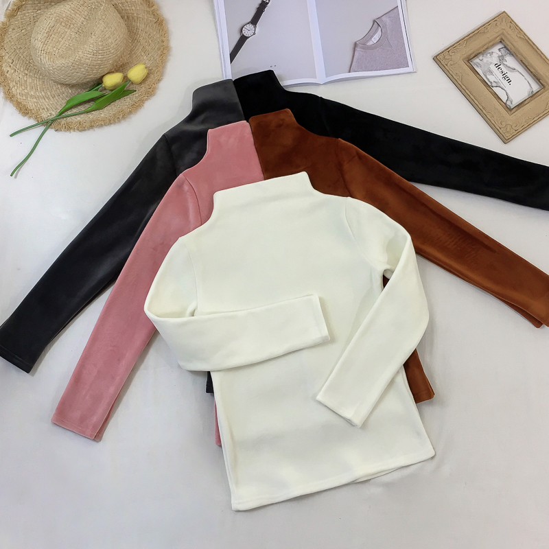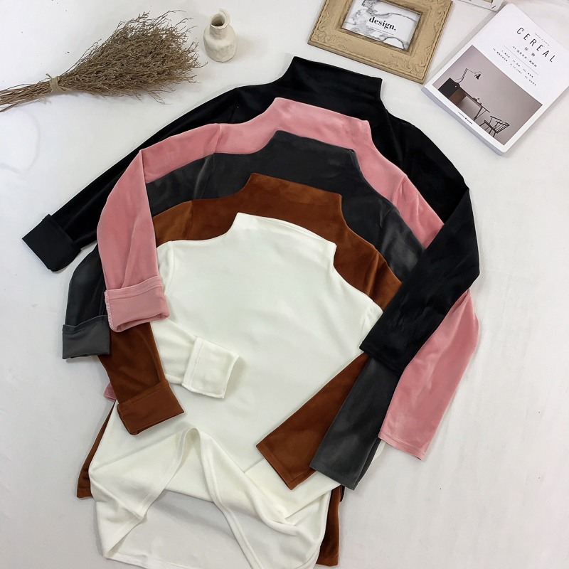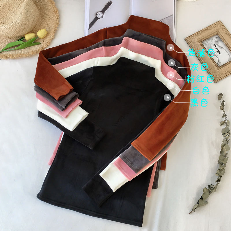 加絨上衣女2018秋冬裝新款韓版高領長袖打底衫修身顯瘦金絲絨T恤