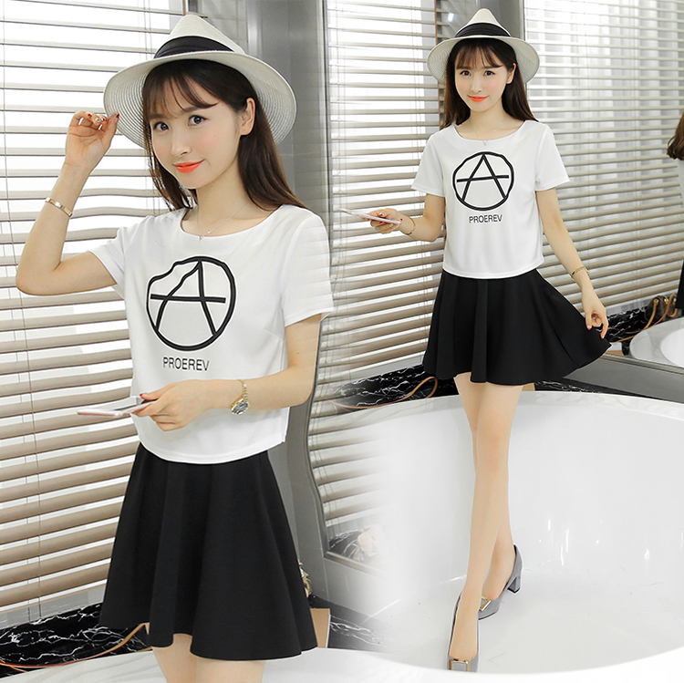 / 夏裝新款T恤+裙子 夏季時尚簡約兩件套套裝裙連衣裙修身韓版