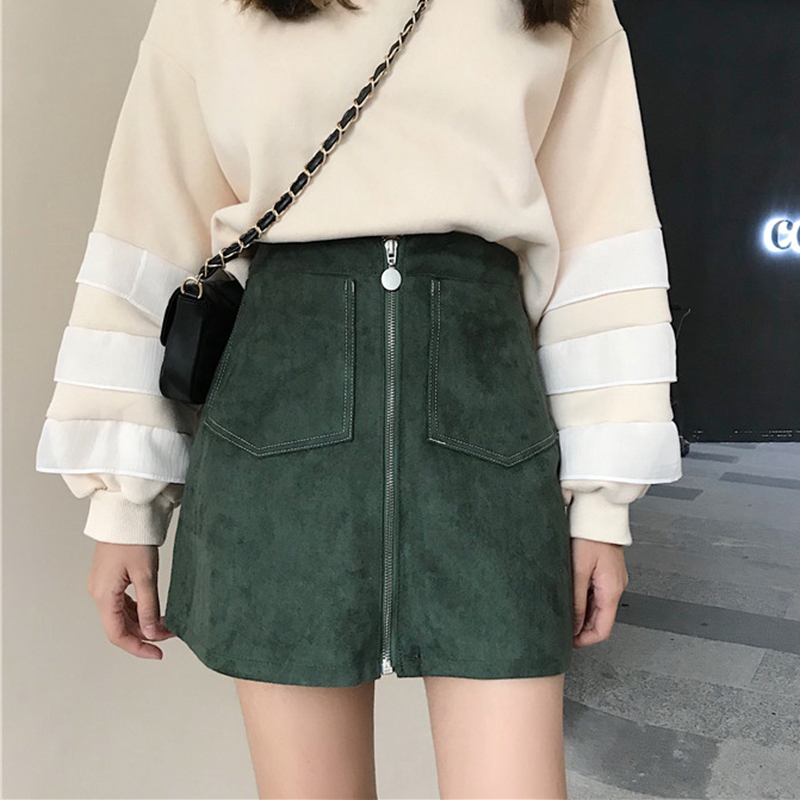 / 裙子女秋裝2018新款時尚麂皮絨半身裙氣質高腰A字裙拉鏈包臀短裙