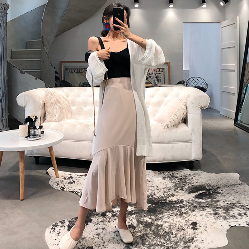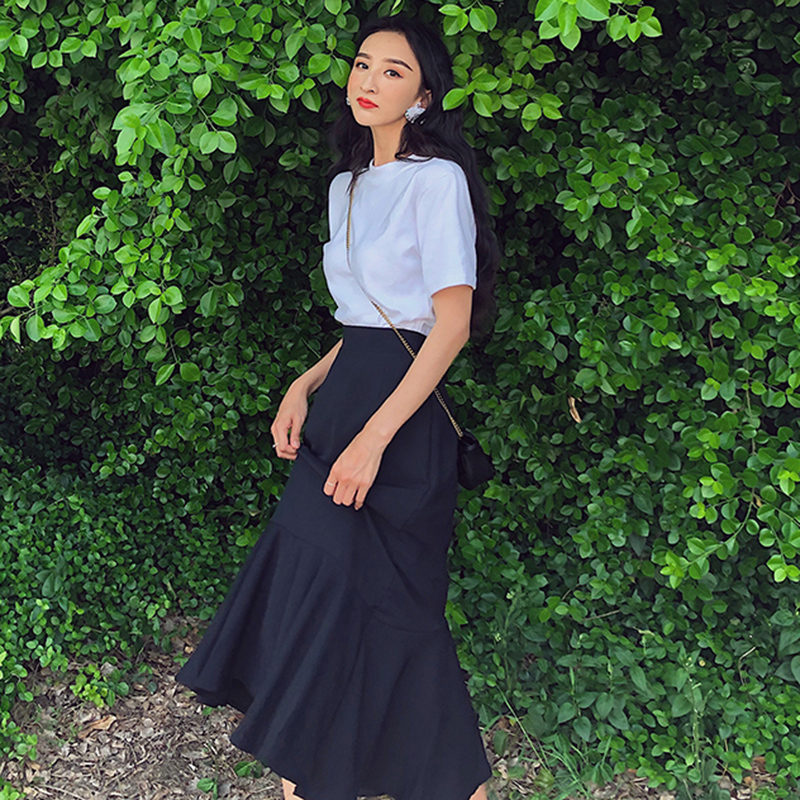 / 半身裙女夏新款韓版女裝修身垂感荷葉邊魚尾裙氣質高腰包臀中長裙