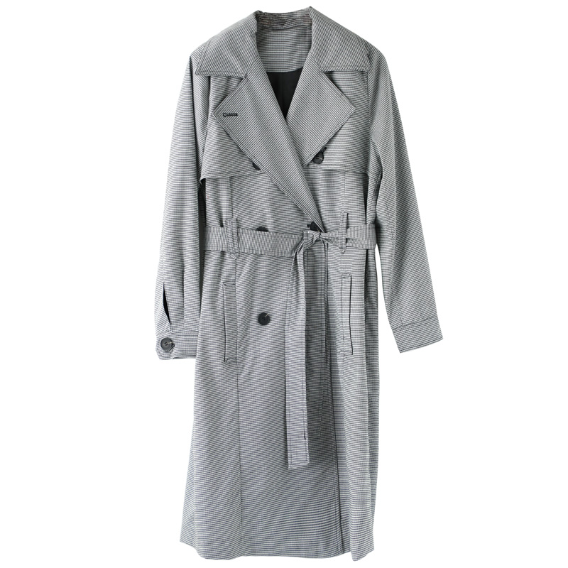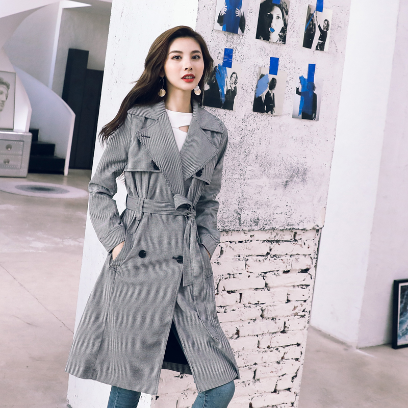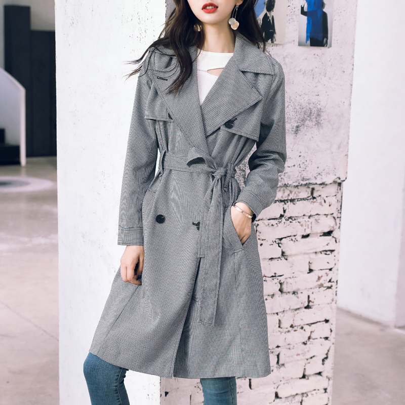 復古格子風衣女中長款2018春秋季新款韓版收腰顯瘦翻領外套大衣潮