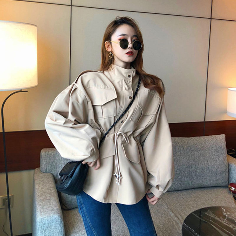 / 港風寬松復古時尚工裝風衣女中長款韓版秋季2018新款收腰短外套女