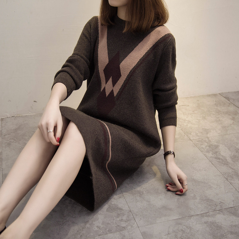 / 秋冬季新款潮打底衫女毛衣裙外套新款潮圓領套頭復古毛線衣女