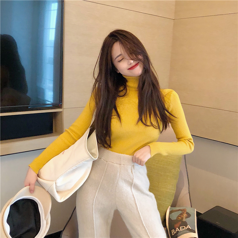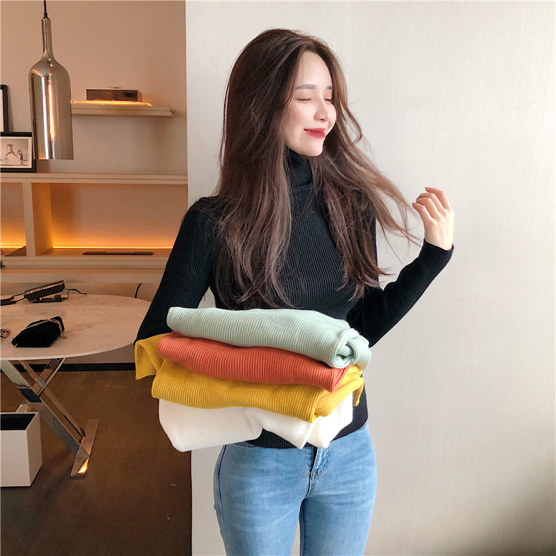 韓版秋冬基礎款慵懶風毛衣女套頭半高領針織打底衫內搭長袖上衣潮