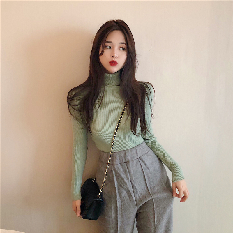 / 韓版時尚慵懶風套頭毛衣女2018新款秋冬百搭糖果色高領毛衣打底衫
