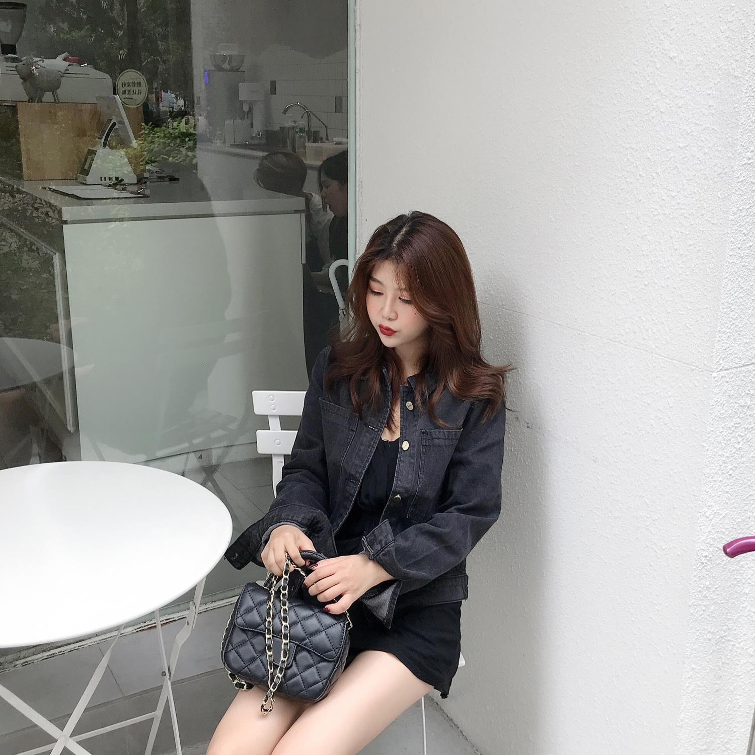 港味復古chic風2018新款秋季時尚百搭氣質顯瘦洗水短牛仔外套女潮