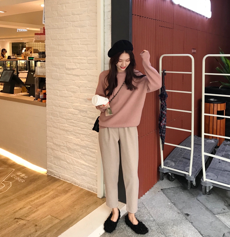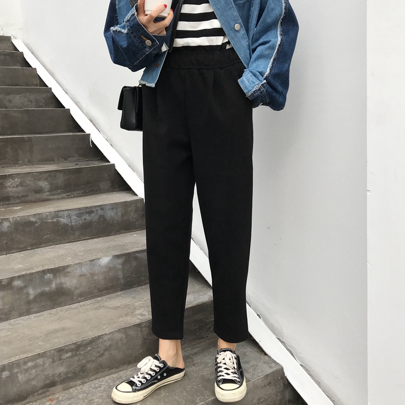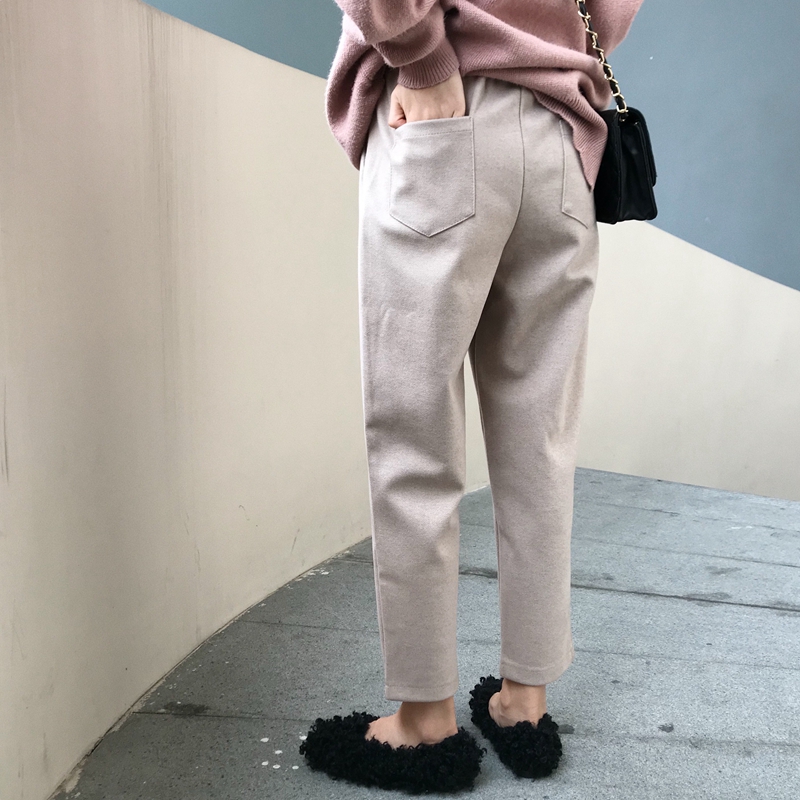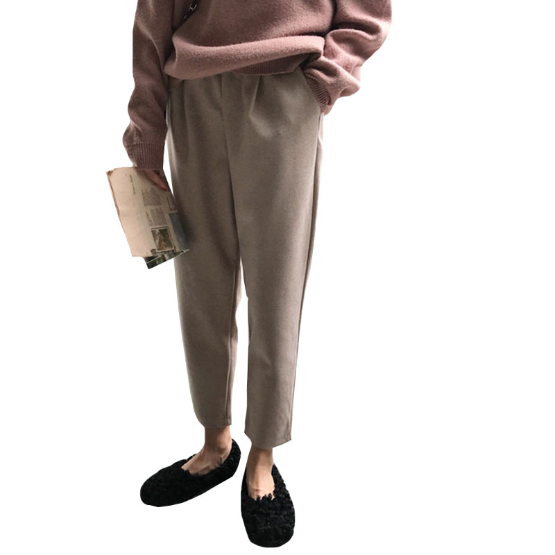 2018新款秋冬女裝韓版寬松呢子褲子直筒褲高腰休閑褲闊腿褲九分褲