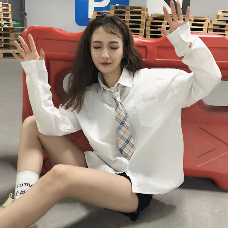 秋裝女2018新款韓版學院風領帶白襯衫學生時尚休閑寬松長袖上衣潮