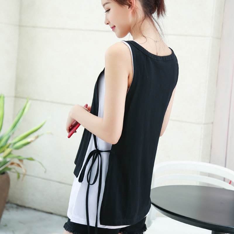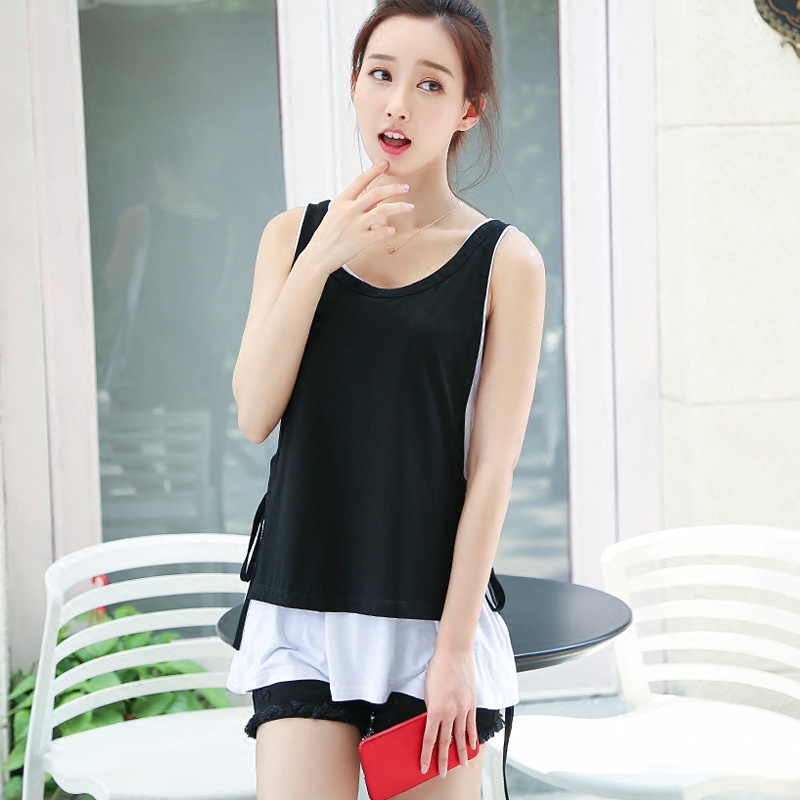 / 夏裝新款棉寬松大碼顯瘦假兩件圓領背心女吊帶打底衫上衣
