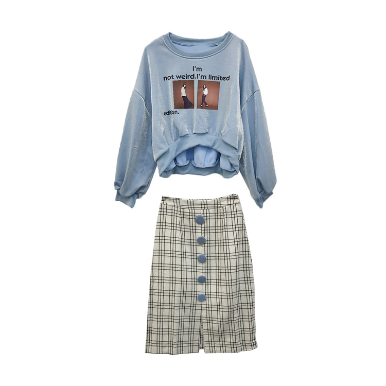 復古秋裝女2018新款套裝百搭字母印花衛衣女+百搭豹紋短裙兩件套