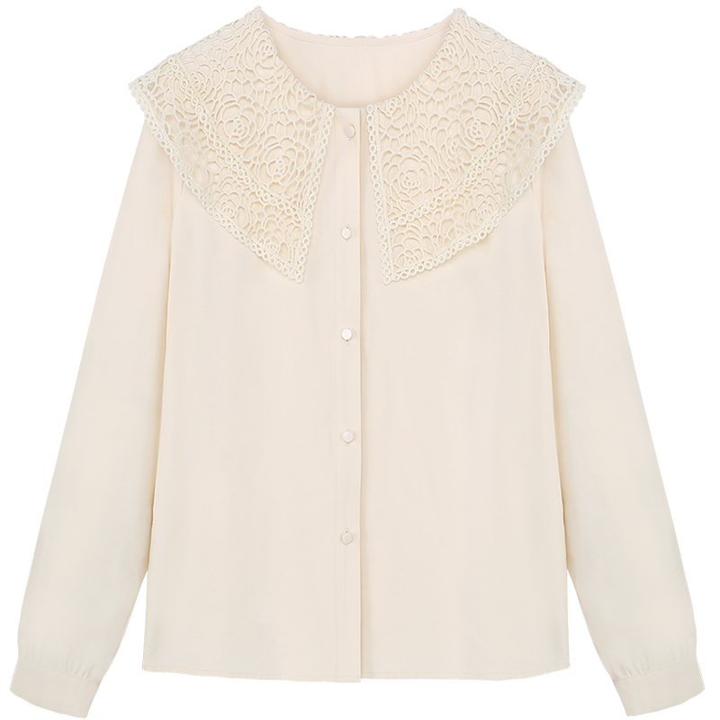 MG小象心機襯衫女長袖秋2018新款寬松chic上衣設計感蕾絲拼接襯衣