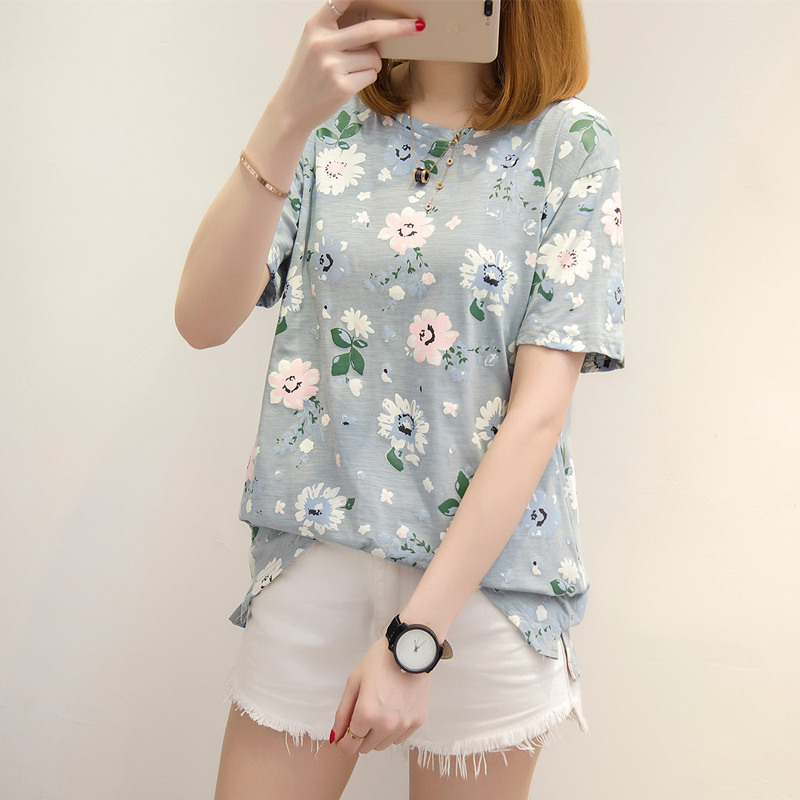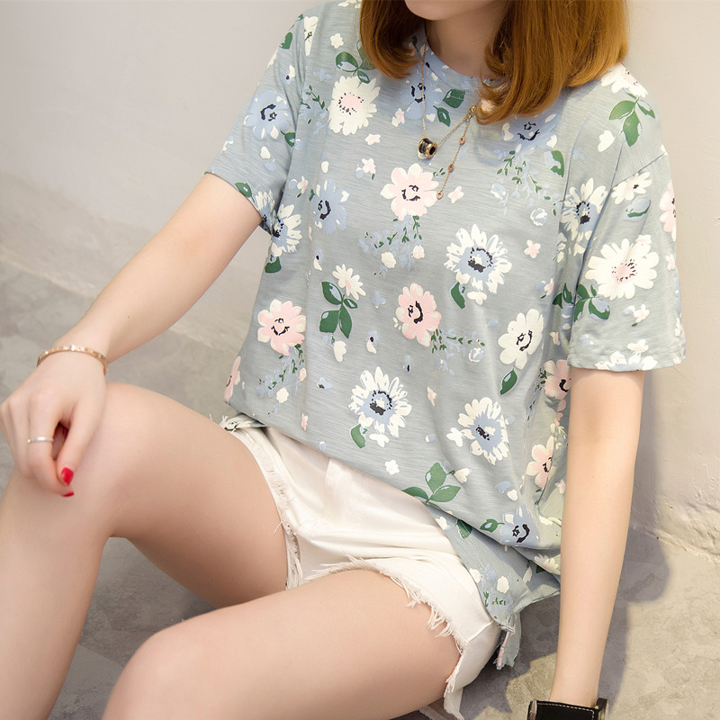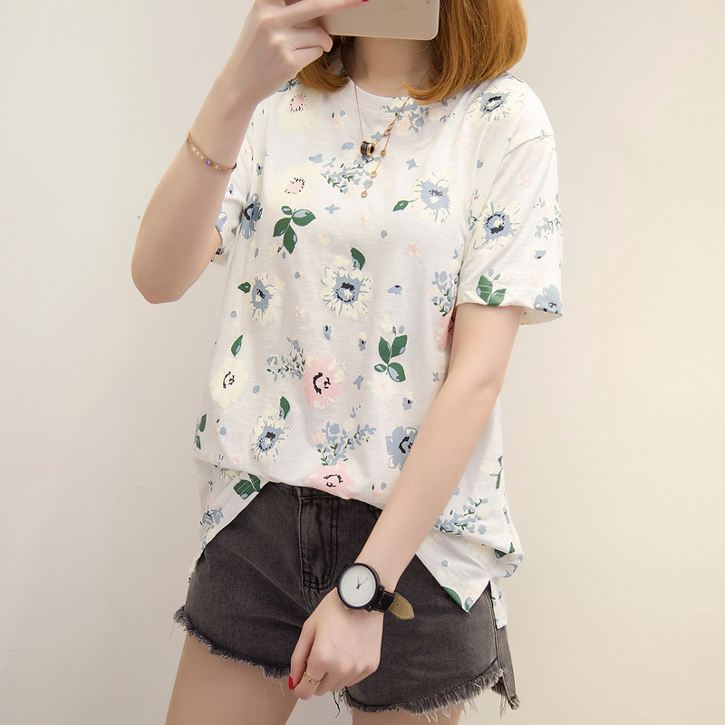 夏裝新款女裝寬松t恤女韓版花卉休閑體恤衫上衣女夏百搭學生