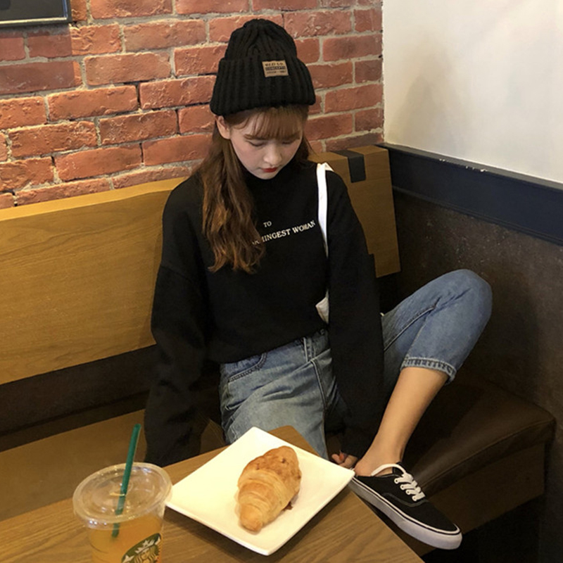 / 高領字母印花長袖T恤女秋冬裝2018新款學生韓版修身顯瘦打底上衣