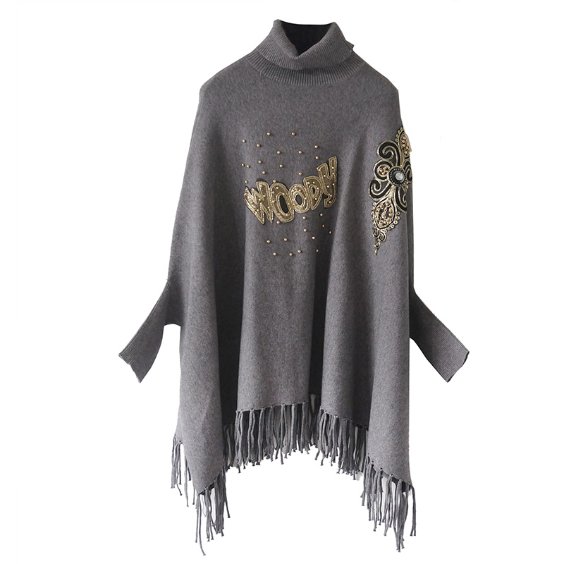 2018秋冬季新款流蘇針織衫斗篷披肩蝙蝠袖外套中長款套頭毛衣女裝