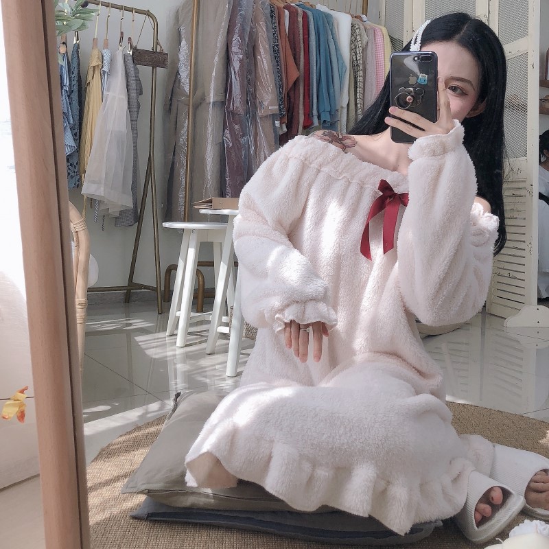 2018秋冬新款韓版甜美簡約時尚chic學生百搭蝴蝶結睡裙睡衣家居服