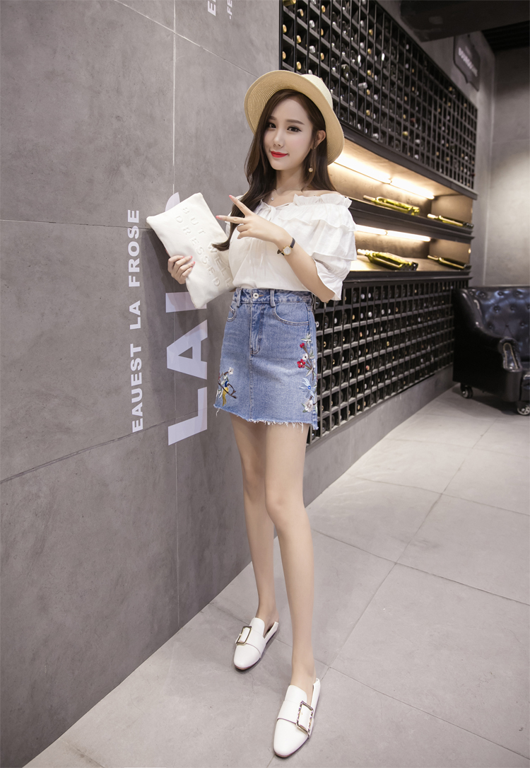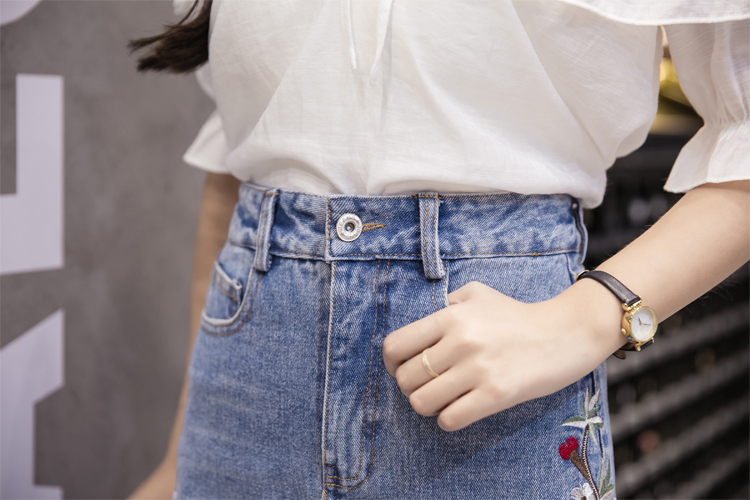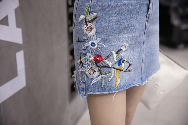 / 夏季刺繡牛仔裙半身裙女韓版高腰繡花A字裙包臀短裙顯瘦褲裙半裙