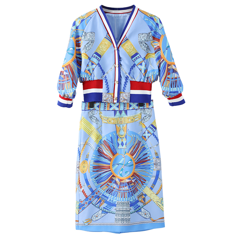 名媛女裝夏裝2018新款印花運動上衣休閑收腰半身裙子高腰顯瘦套裝