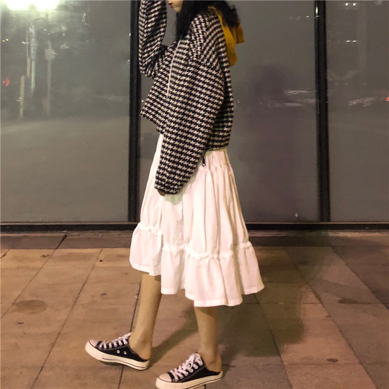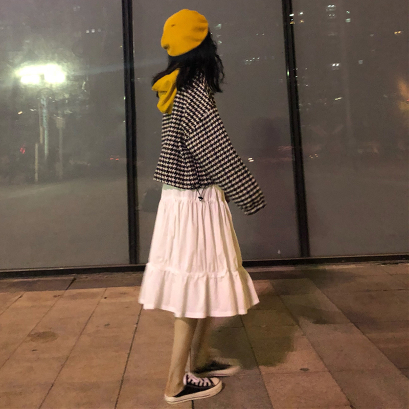 洋氣套裝女秋冬2018新款格子拼接連帽衛衣中長款高腰A字半身裙子