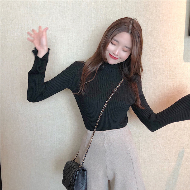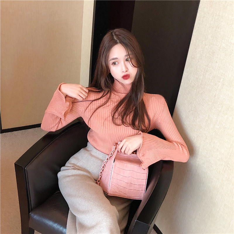 / chic新款上衣女修身顯瘦時尚韓風百搭喇叭袖加厚打底針織衫毛衣潮