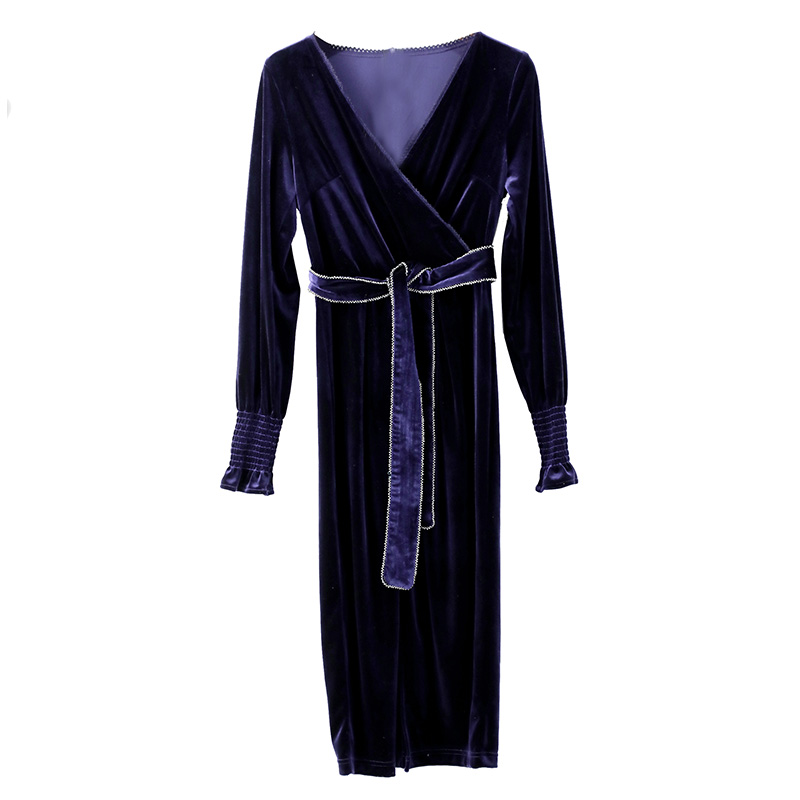 復古絲絨長裙氣質名媛修身裙子收腰中長款連衣裙女裝秋裝2018新款