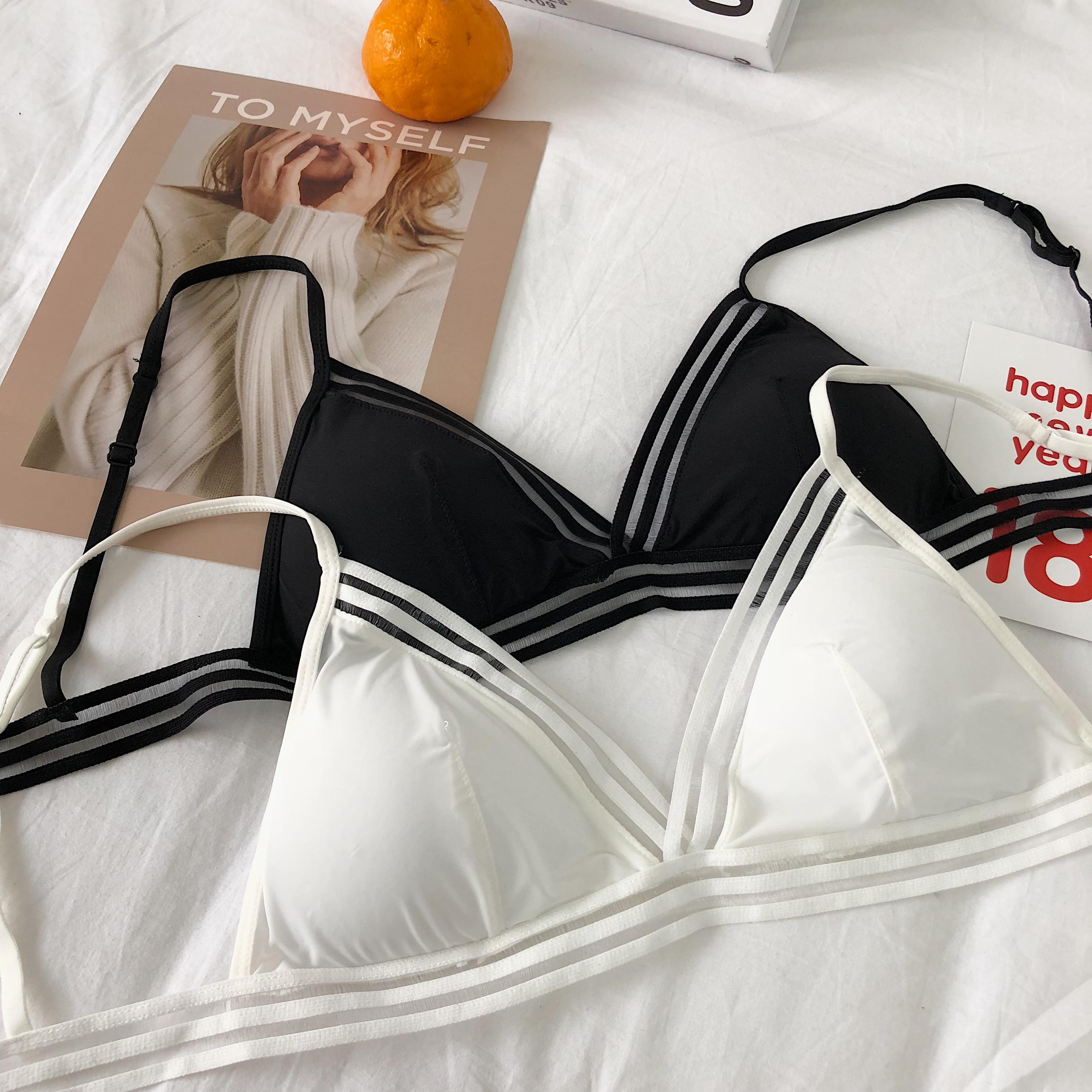 / 春夏韓版冰絲無鋼圈三角杯文胸帶胸墊性感美背吊帶小背心內衣女士