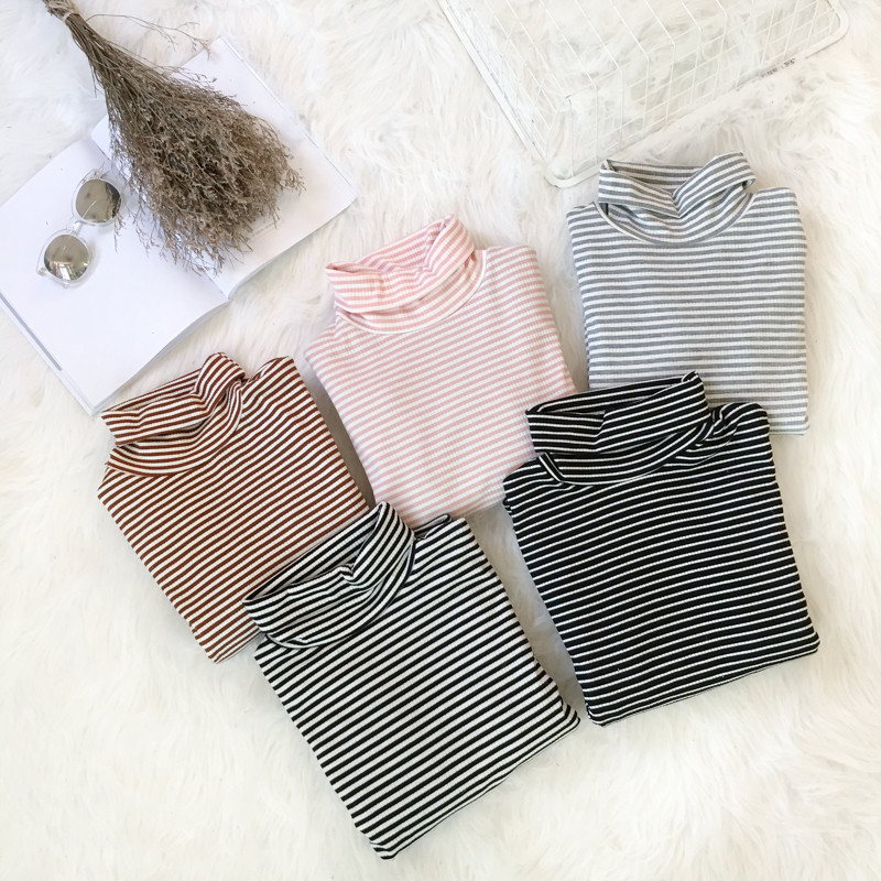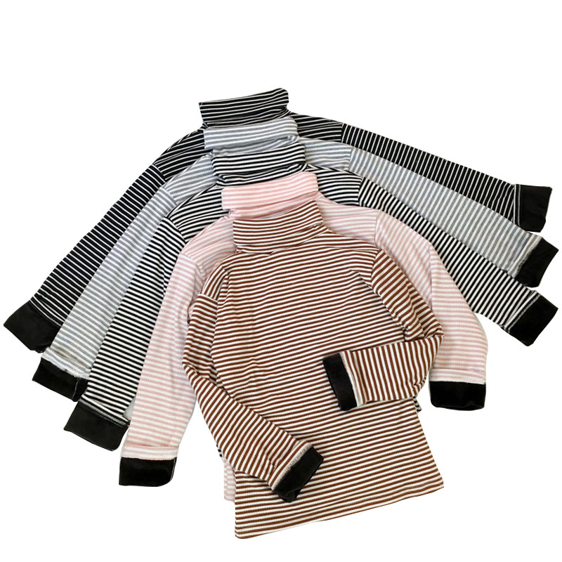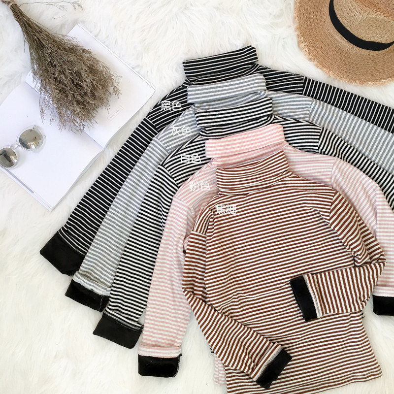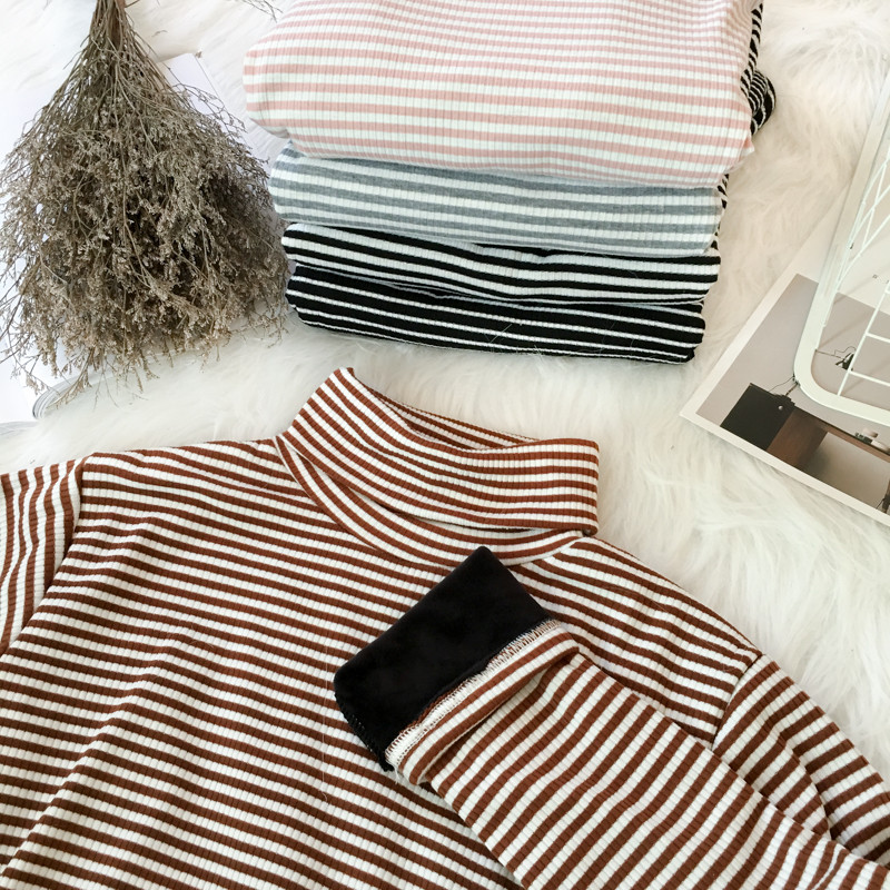 / 秋冬女裝韓版修身顯瘦百搭高領長袖條紋加絨加厚打底衫T恤上衣潮