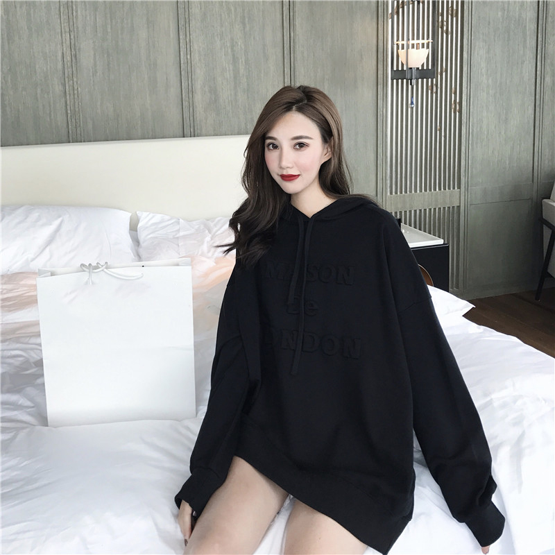 / 港味時尚復古百搭寬松簡約字母上衣長袖連帽薄款衛衣2018新款女裝