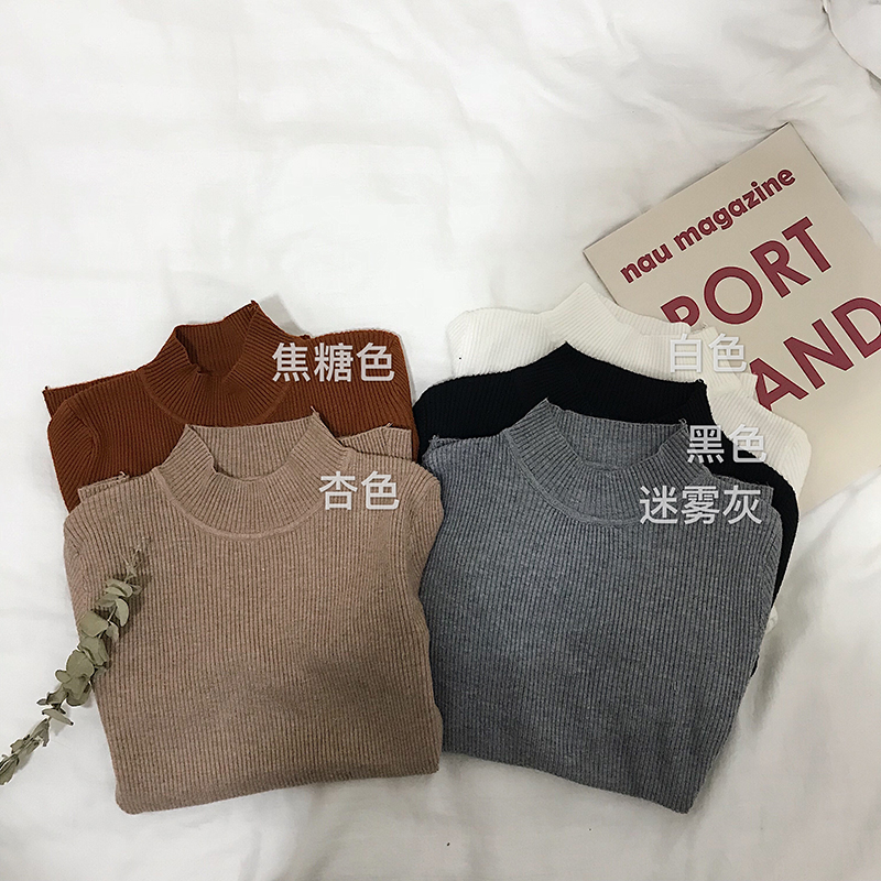 / 秋冬新款chic顯瘦打底衫氣質純色半高領網紅套頭針織衫毛衣上衣女