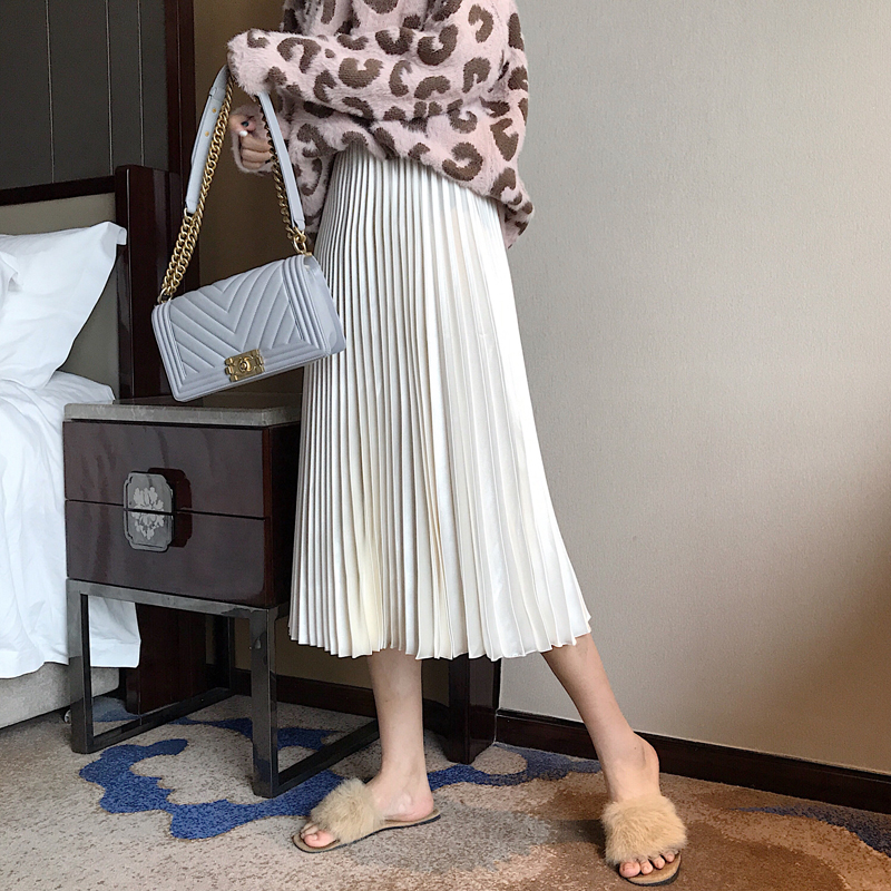 奶油白壓褶裙|銀色壓褶裙|粉色豹紋|黃色豹紋