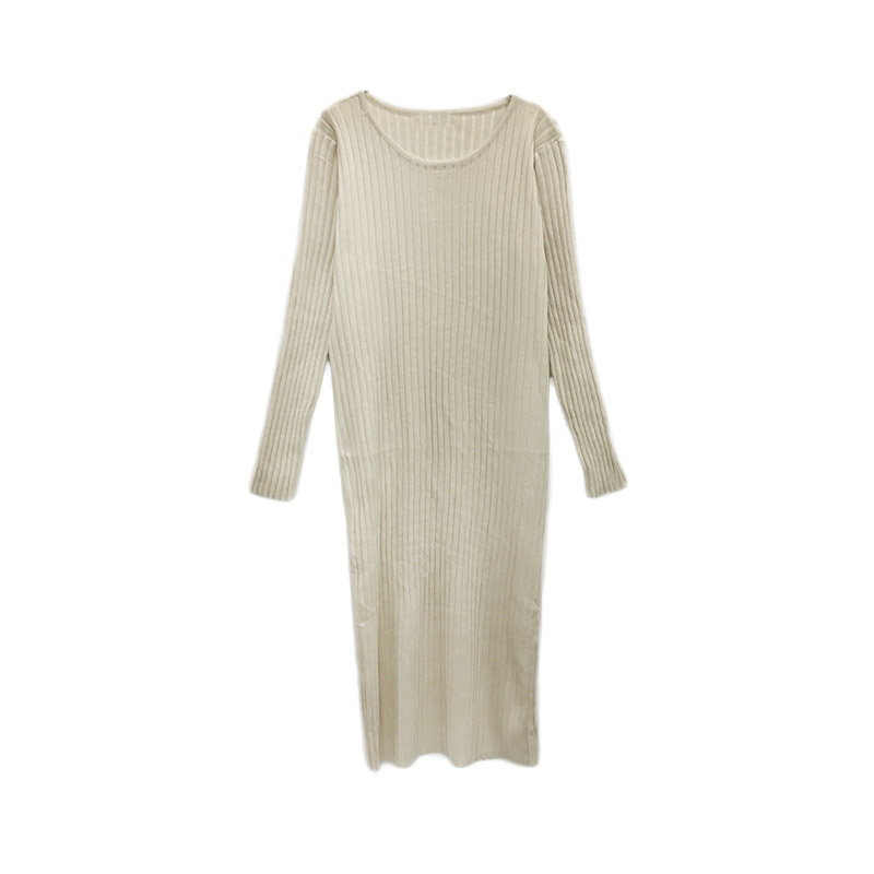慵懶風套頭毛衣女2018新款秋冬韓版長款純色修身氣質開叉連衣裙女