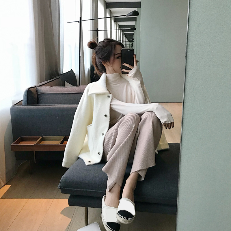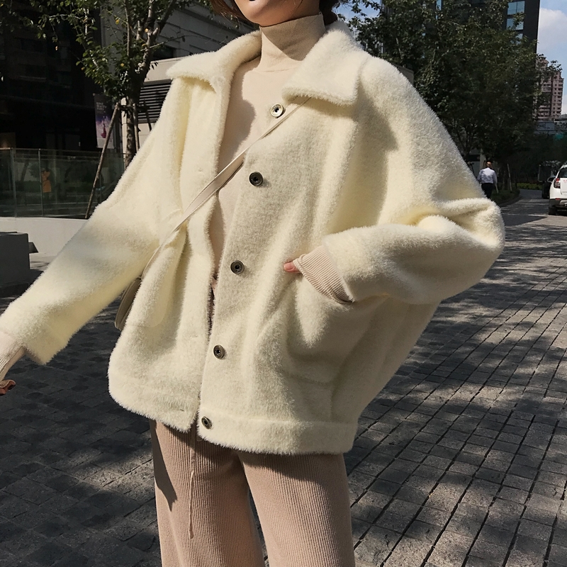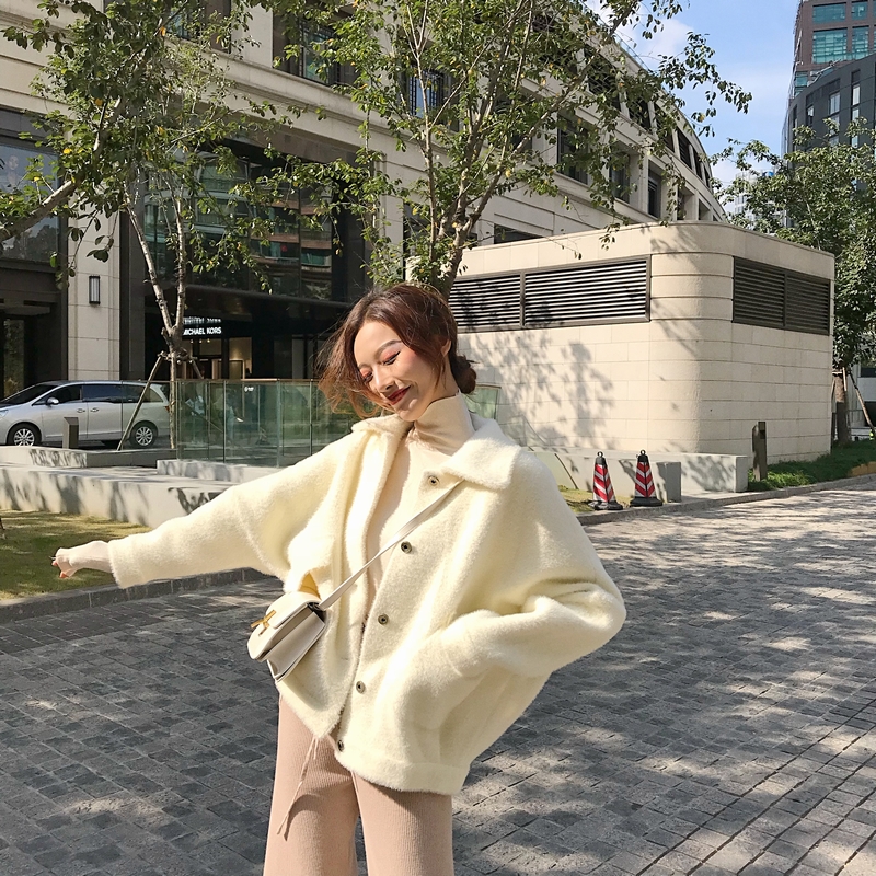/ 甜美簡約百搭新款時尚女裝毛茸茸長袖外套chic港風短款翻領開衫潮
