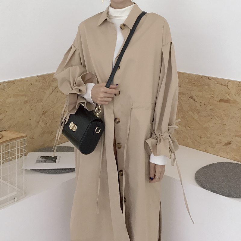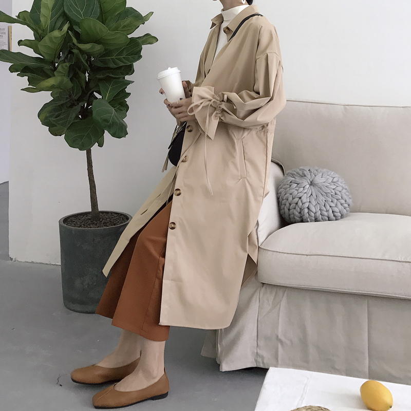 / 復古韓國chic風秋裝女2018新款百搭中長款系帶長袖時尚風衣外套潮