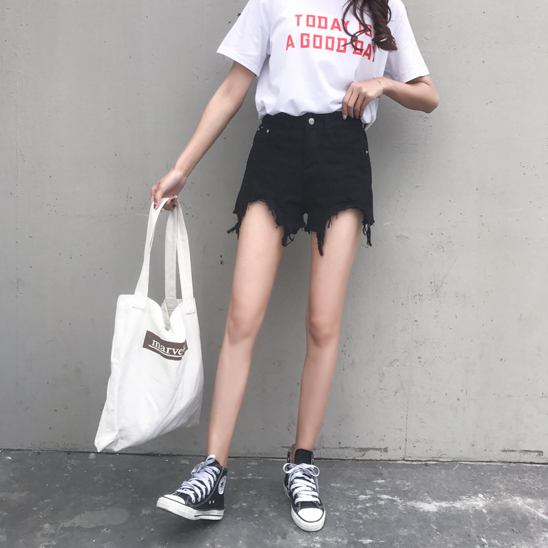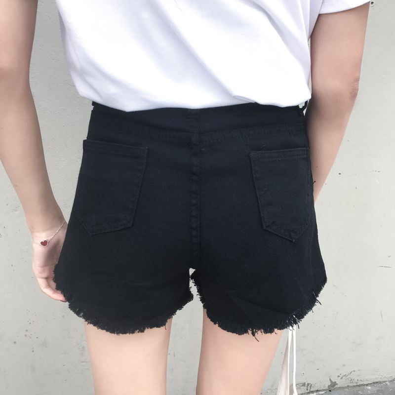秋季新款復古韓國百搭基礎顯瘦牛仔短褲女夏高腰毛邊熱褲闊腿褲潮