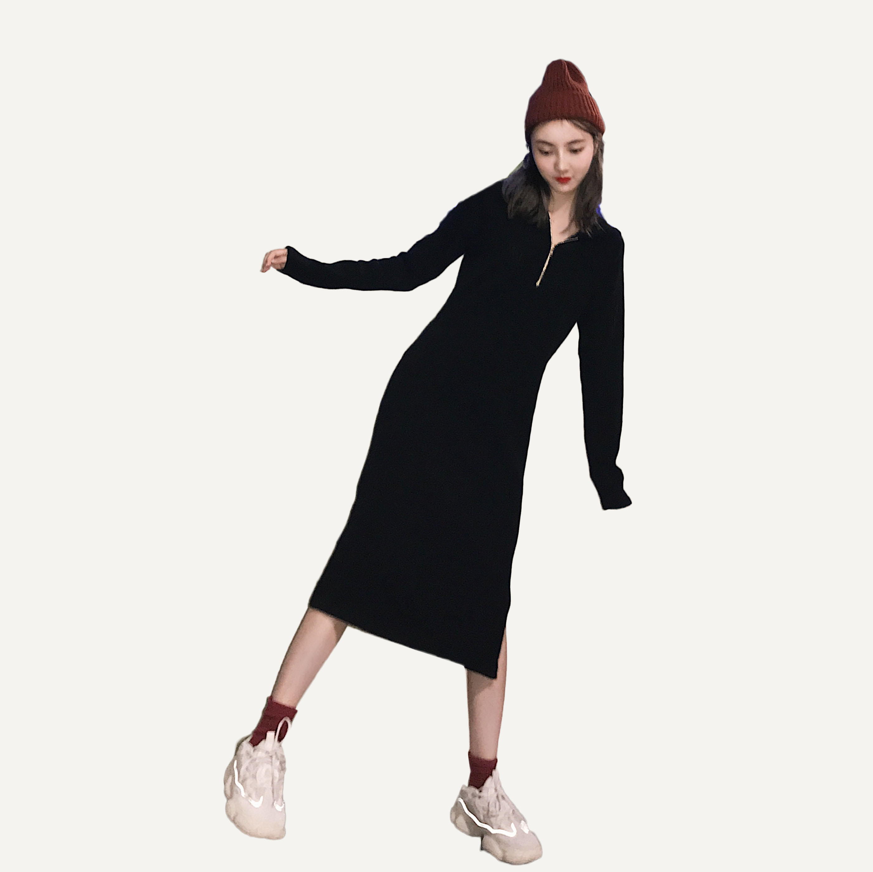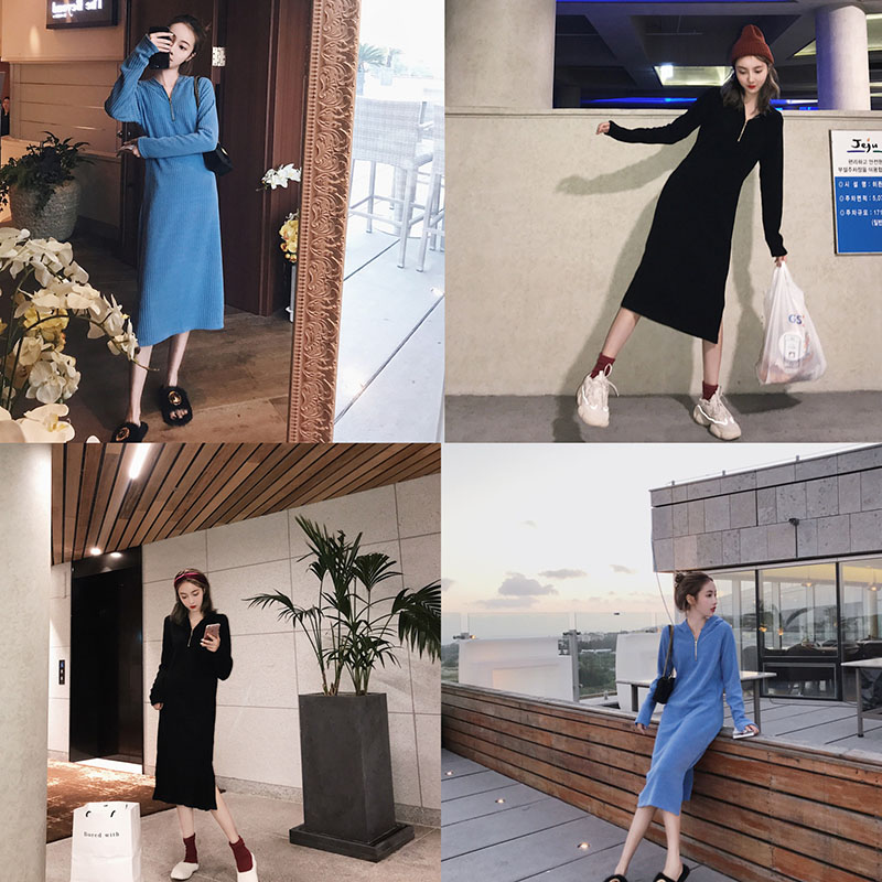 / 復古女裝秋2018新款女連帽寬松百搭過膝針織長款連衣裙長袖打底裙
