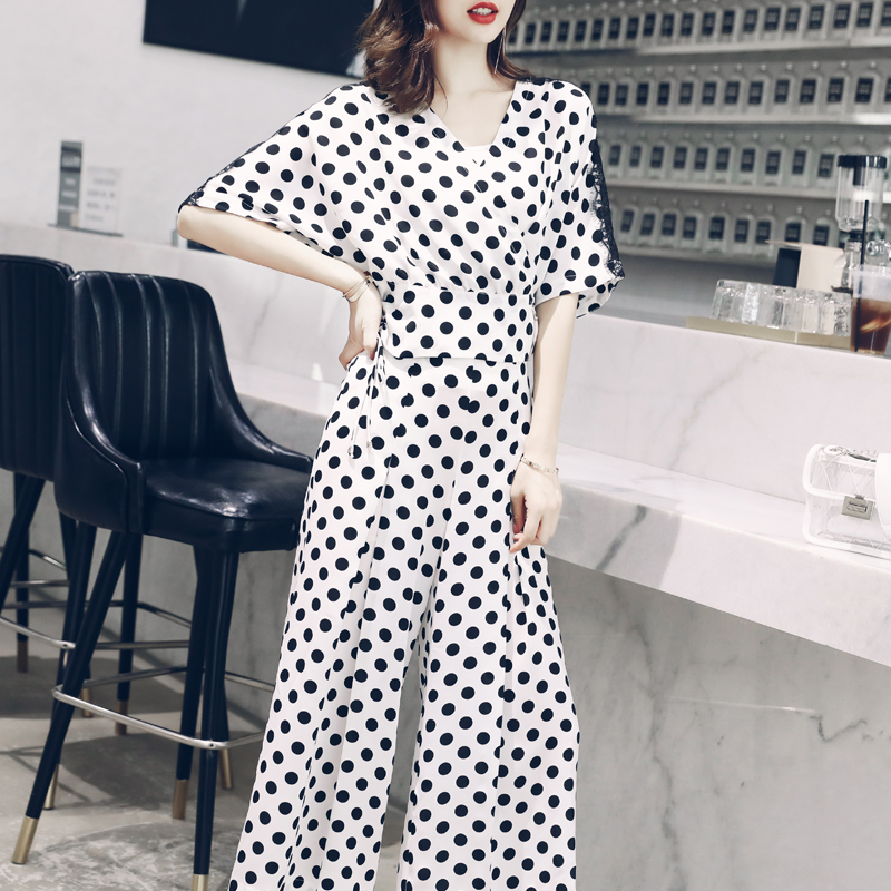 / S秀女裝2018夏裝新款名媛氣質波點收腰顯瘦網紅休閑褲連體褲女