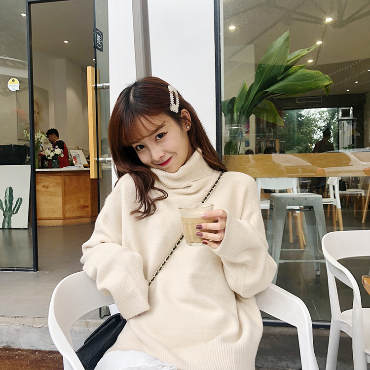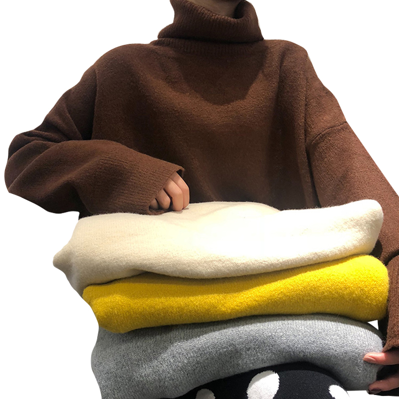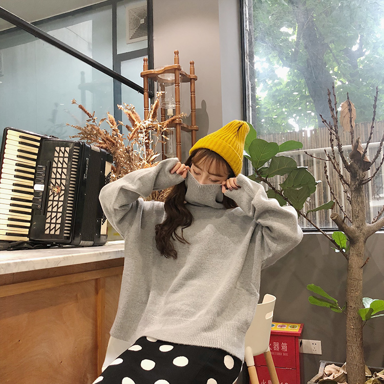 2018新款秋冬女裝韓版高領純色慵懶風寬松套頭毛衣針織衫上衣外套