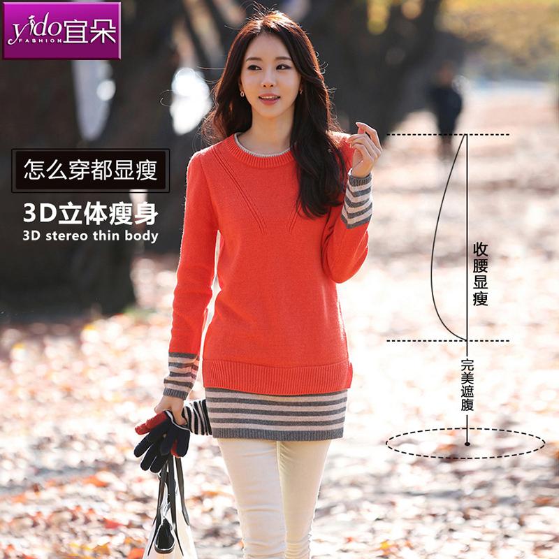 宜朵中長款套頭打底毛衣女春季假兩件包臀毛衣裙女針織衫毛衣打底