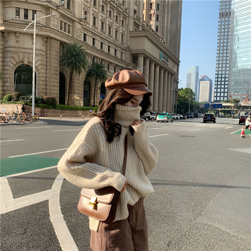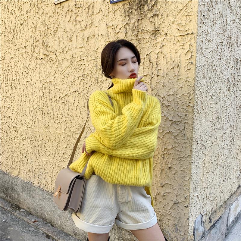 時尚高領慵懶風毛衣女秋冬2018新款+寬松時尚卷邊燈芯絨短褲套裝