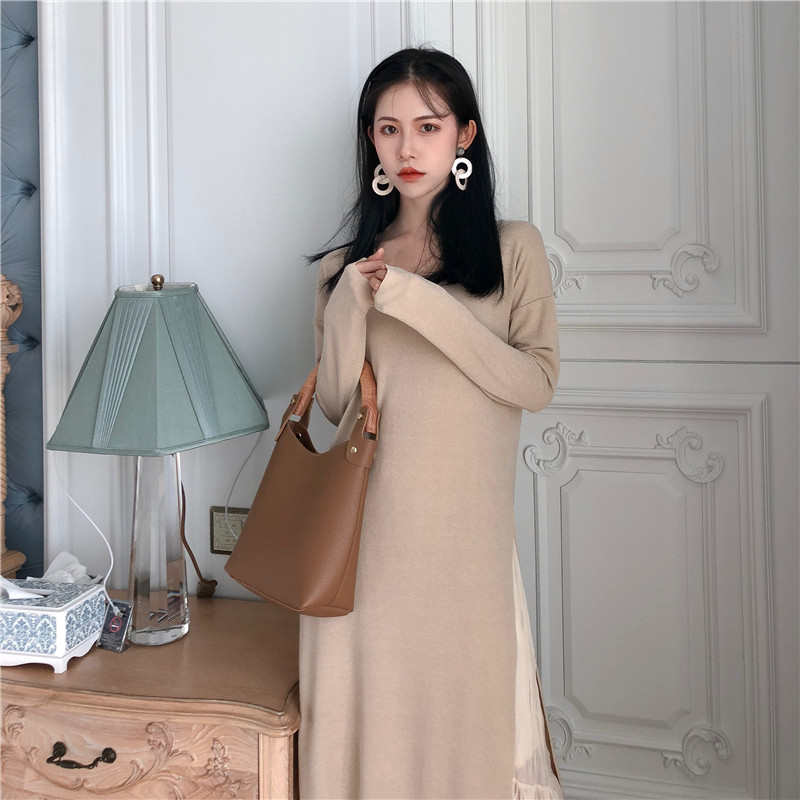 / 雪紡吊帶長款連衣裙外搭兩件套韓版氣質chic長袖T恤裙甜美套裝女