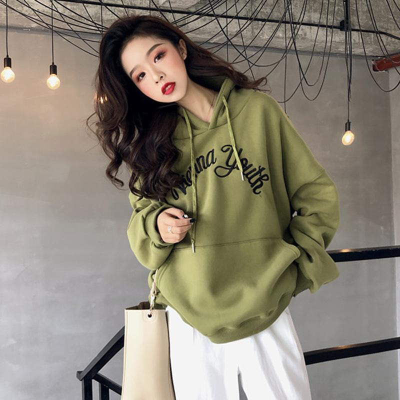 / chic慵懶風字母刺繡衛衣女秋冬裝2018新款韓版百搭寬松連帽外套潮
