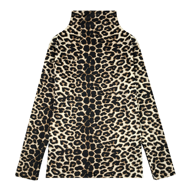 秋冬2018新款女裝港味復古豹紋長袖T恤氣質修身高領金絲絨打底衫
