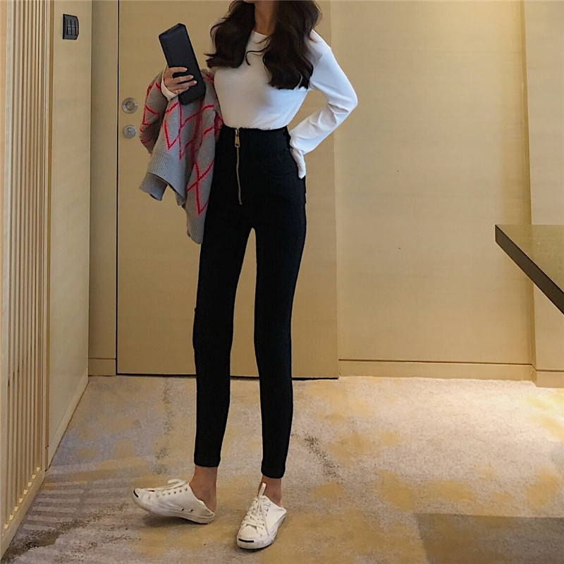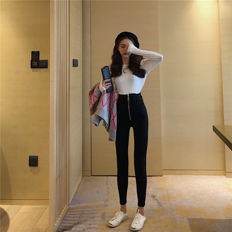 / 褲子女2018新款韓版修身顯瘦百搭緊身高腰打底長褲洗水彈力小腳褲