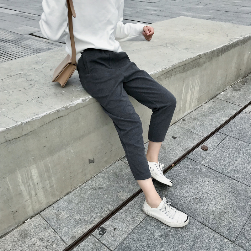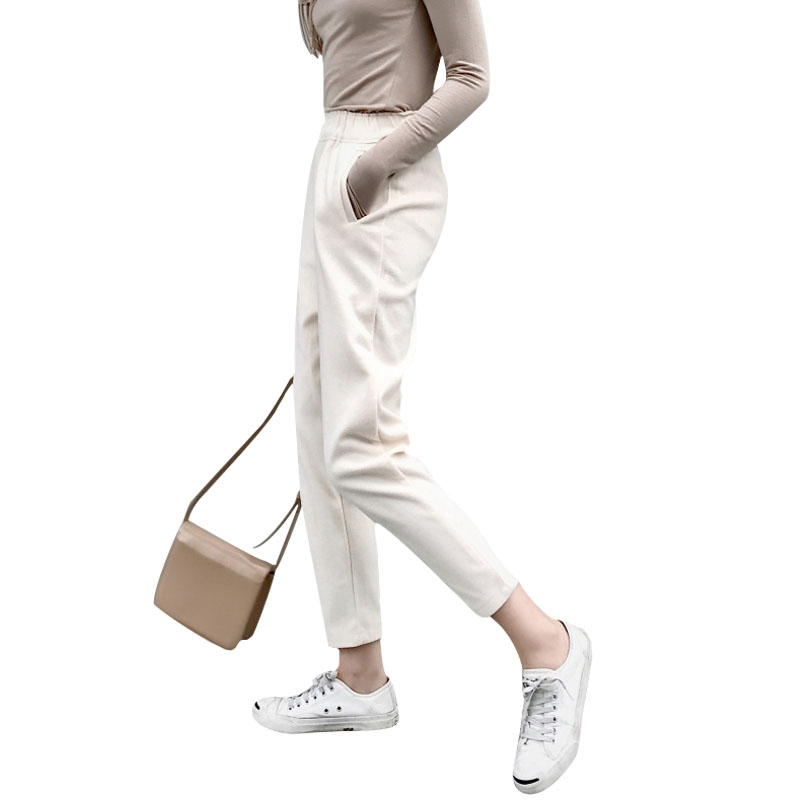 / 秋冬女裝韓版寬松加厚呢子哈倫褲九分褲高腰直筒褲休閑褲學生褲子