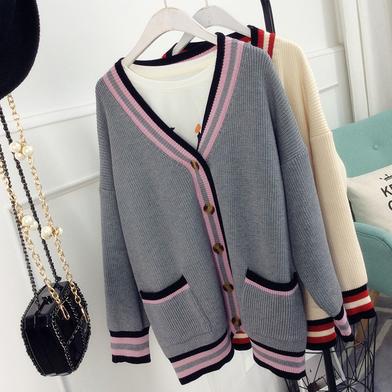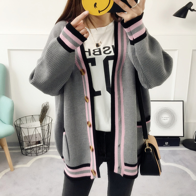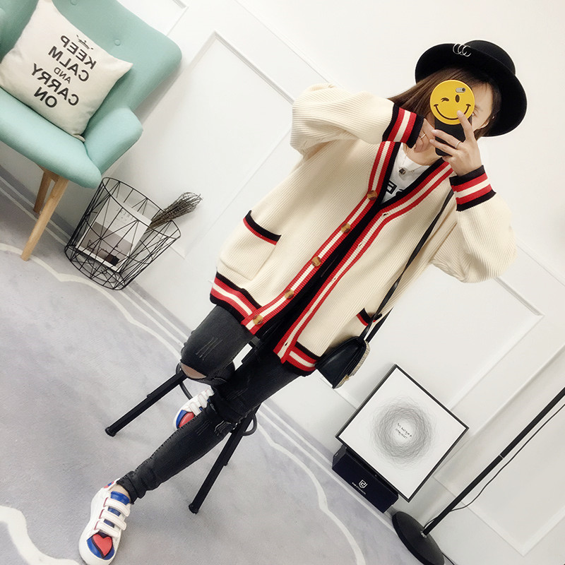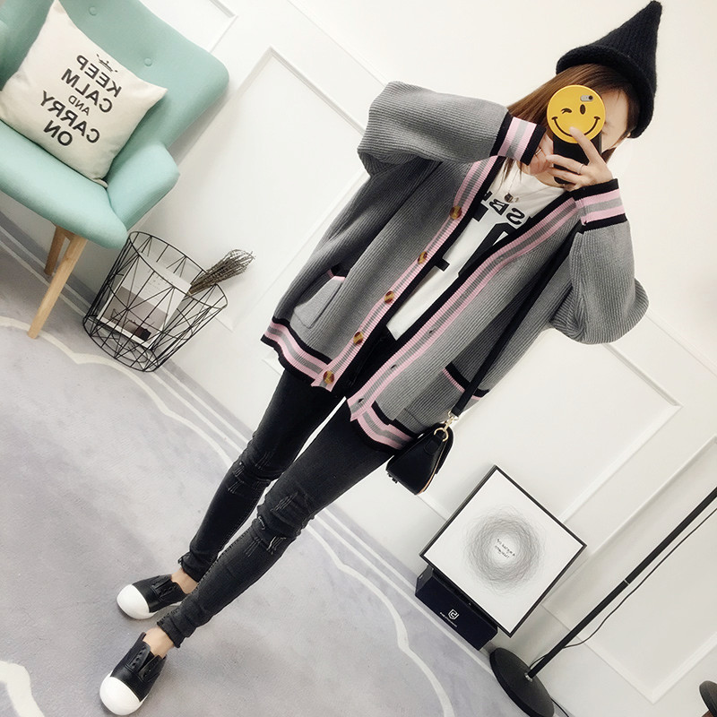 / 韓版百搭條紋春秋毛衣春裝新款女針織衫開衫外套春季寬松女裝