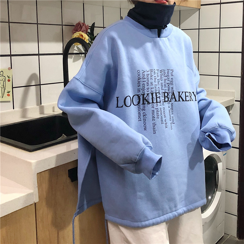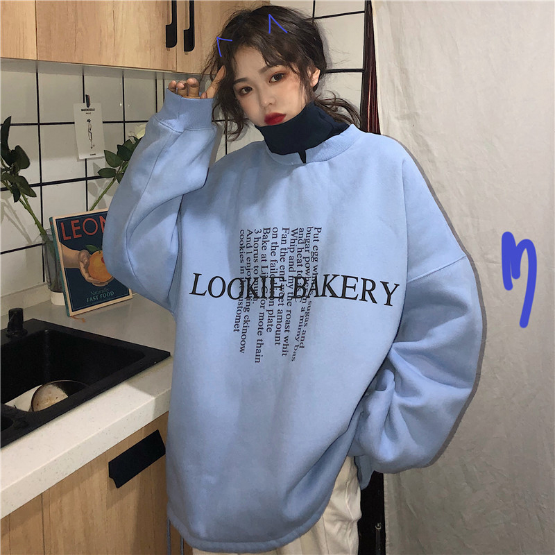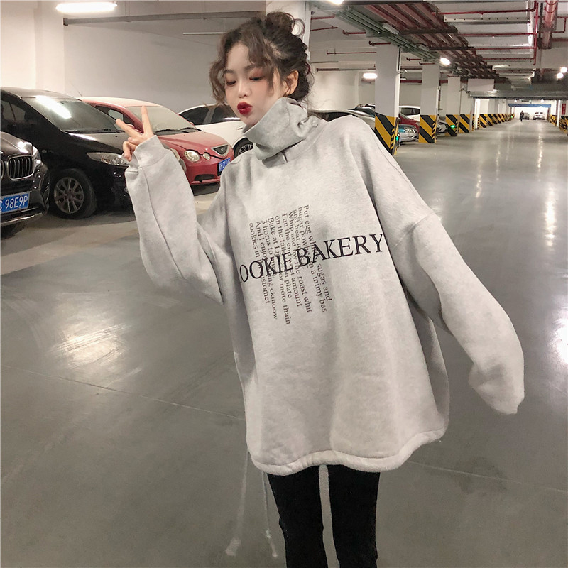假兩件高領加絨衛衣女冬裝2018新款韓版中長款側開叉字母長袖外套