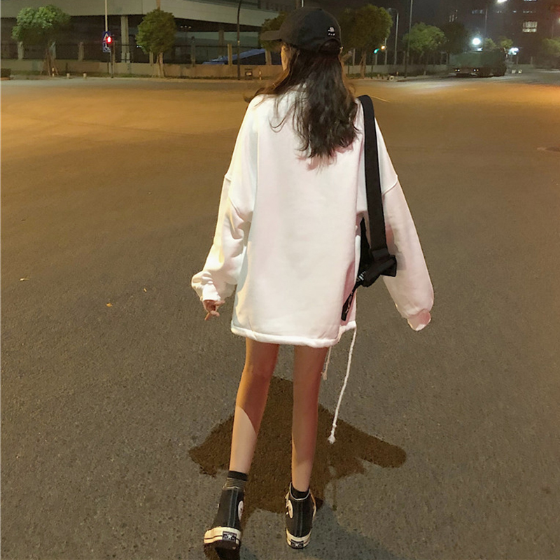 / 假兩件高領加絨衛衣女冬裝2018新款韓版中長款側開叉字母長袖外套