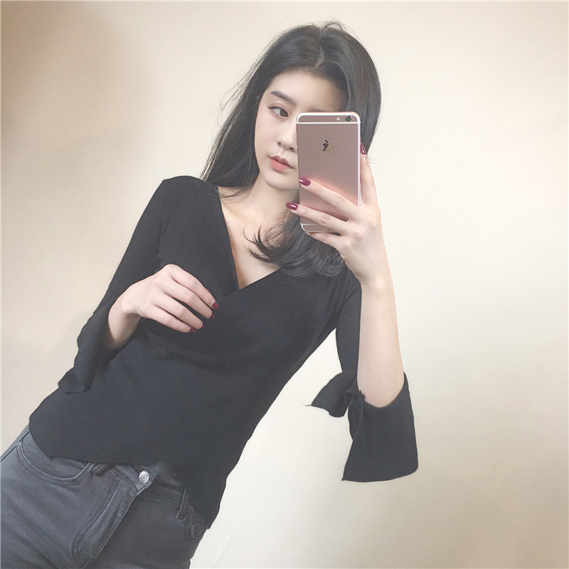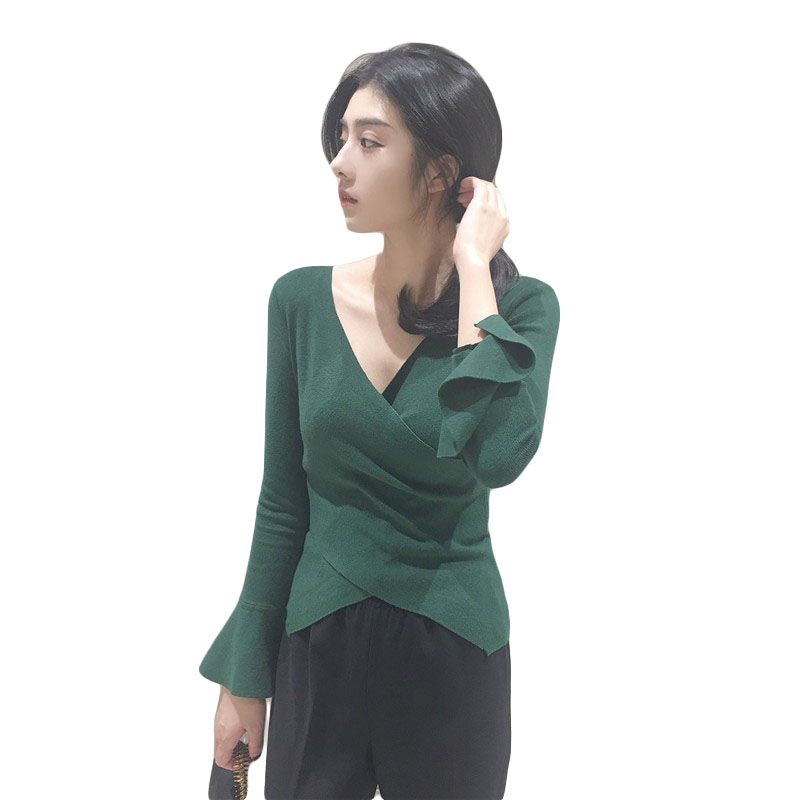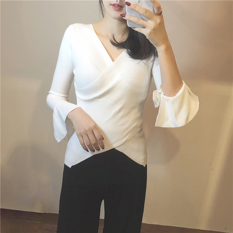/ 2018秋裝新款女交叉領性感V領毛衣韓版修身顯瘦氣質百搭上衣女潮
