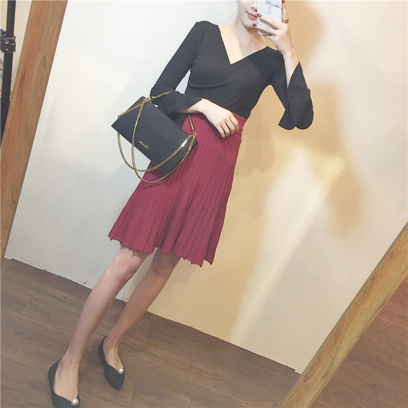 秋裝女2018新款簡約純色韓版上衣修身彈力百搭V領長袖打底針織衫
